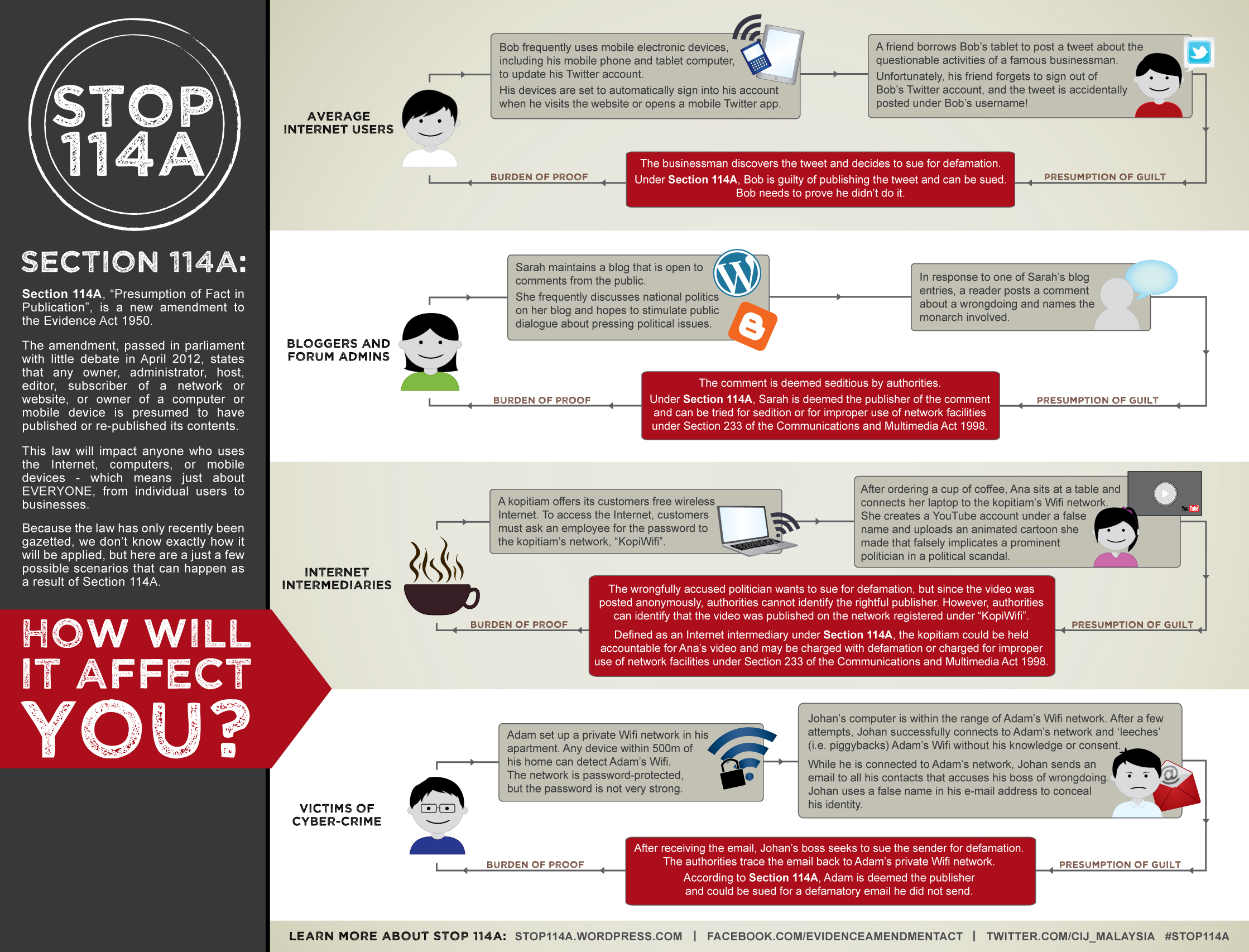 The twitterverse is no stranger to hashtag-calls-for-action, spanning from #free an arrested activist to #stop a particular piece of legislation from moving forward. The most well-known example of a hashtag campaign was the one to stop SOPA and PIPA legislations in the United States. Despite the lack of coverage of these proposed laws on traditional media, mobilization spurred through social media was effective to build a full-on campaign that ended up stopping the passage of this legislation. Recently, NGOs and other civil society actors have been trying to capitalize on this success to try and stop the passage of other internet-restrictive laws, such as in Malaysia (#Stop114A) and in Jordan (#BlackoutJo).