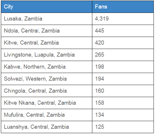 One of the first goals of the CCMG Facebook strategy was to build a solid local base. Advertising for both the CCMG page and subsequent posts were targeted at Zambian men and women with interests in elections, politics and social issues (these interests are determined by the kind of content users themselves share, links they've clicked or self-proclaimed on their profiles). This led to 98% of fans of the page being from Zambia and hopefully interested in the kind of content CCMG was producing.